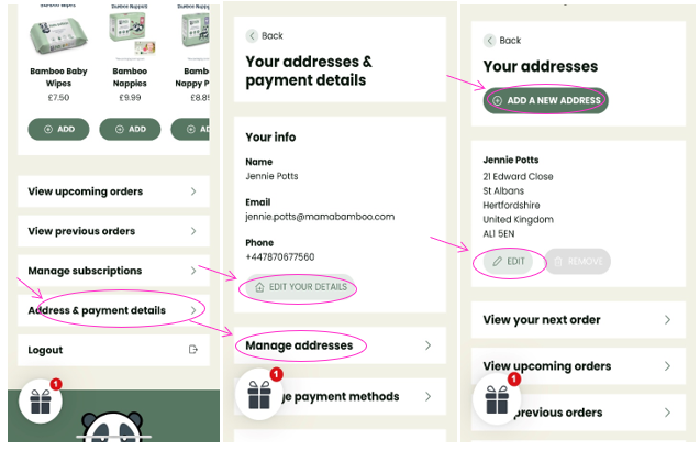 - On the next page click scroll down to the bottom of the page and click on ‘Address & payment details’.
