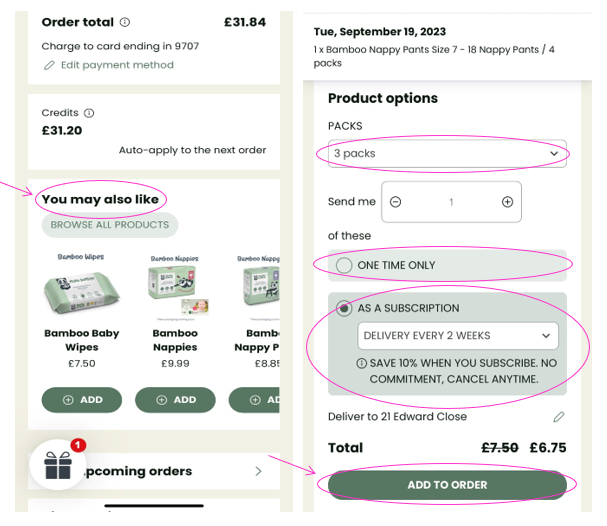 - The product can be added as a one-time only purchase or added as an additional subscription; if it is being added as a subscription a delivery option must be selected.