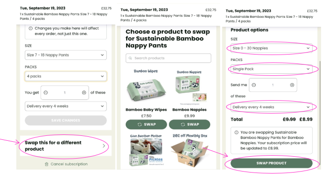 - On the next page click on your subscription product e.g. Sustainable Bamboo Nappy Pants