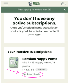 - Click ‘Reactivate’ underneath the subscription you wish to restart.